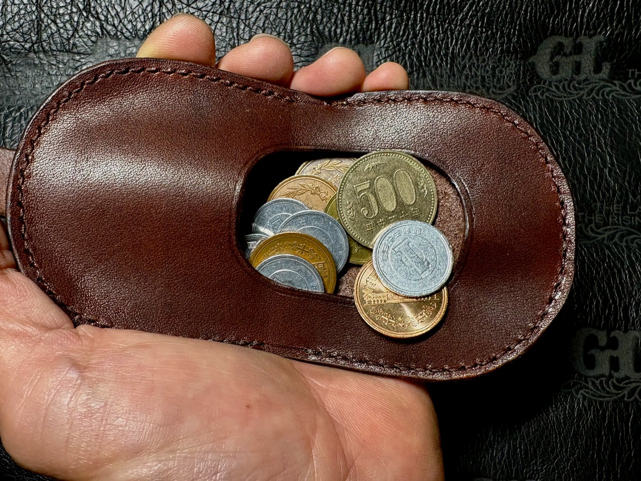 手染めし、手縫いで縫製した小銭入れ。