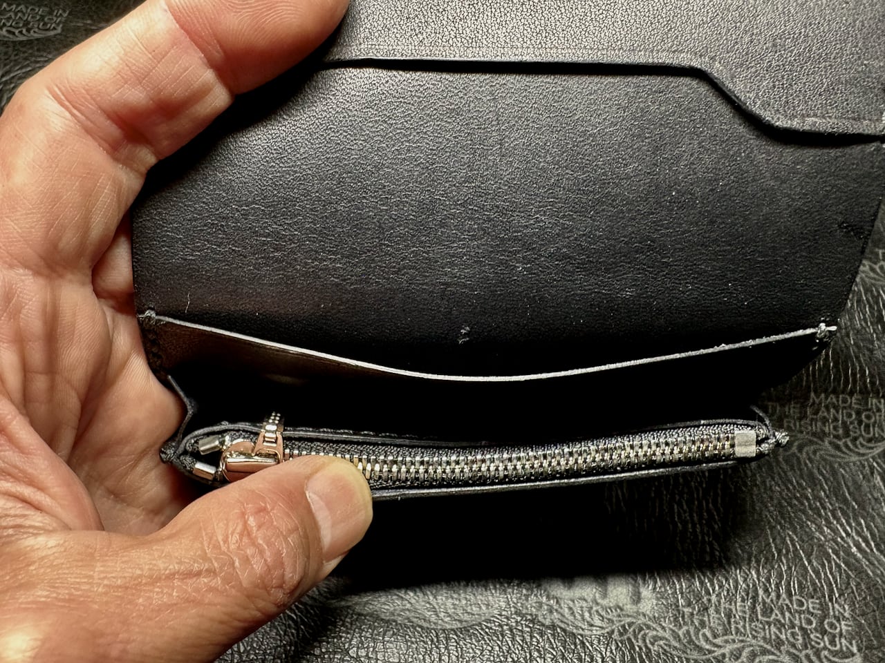 内部は札入れ×1、カード入れ×1、ジッパー付きコイン入れ×1 になっております。