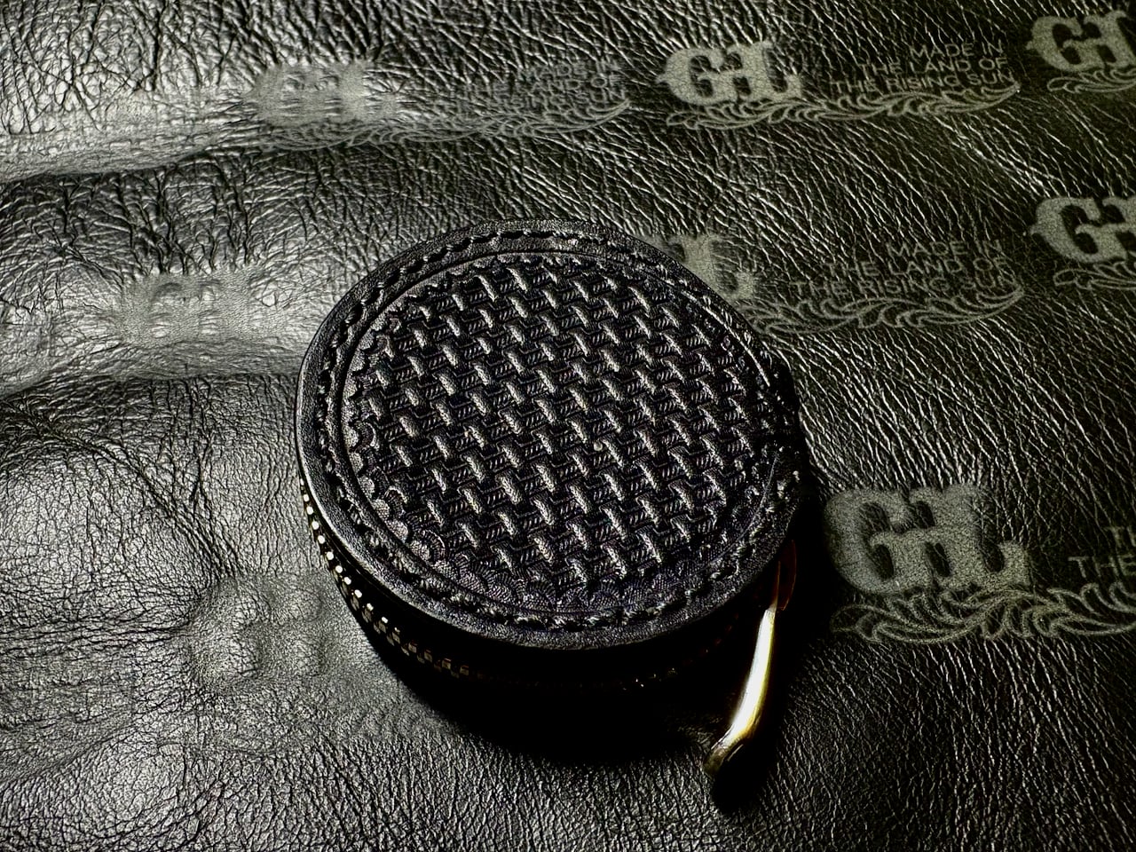 フル・ベジタブル・タンニン・カウハイドレザーにバスケットカーヴィングを施し